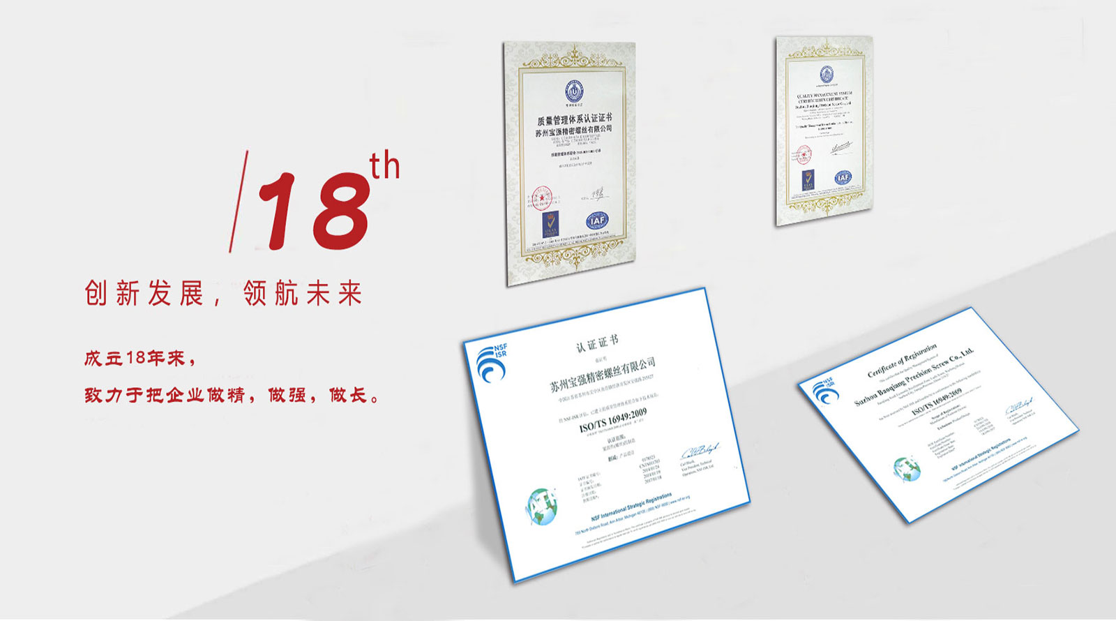 蘇州寶強五金與精密螺絲合并,通過TS/16949體系認證。